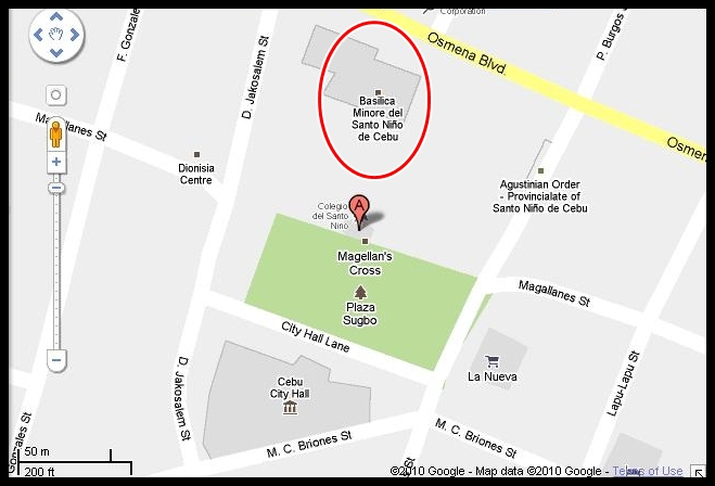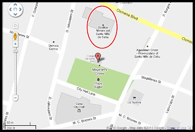 Location of Sto. Niño Church is encircled in red (image credit: maps.google.com)