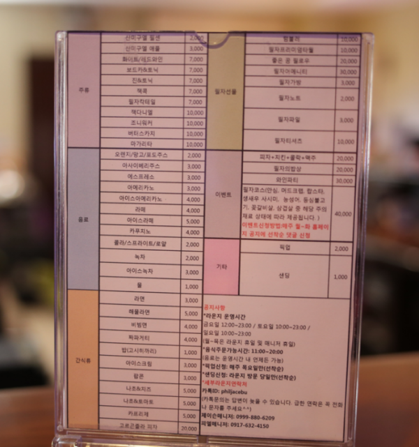 음식뿐만 아니라 필자 선물과 매주 진행되는 이벤트 및 픽업과 센딩 서비스 비용까지 나와 있는데요.