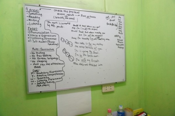 매일 신관 1층 오피스 옆 화이트 보드에 다음날 볼 단어테스트 장이 붙여지게 된다.