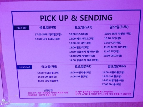 각 학원마다 픽업, 샌딩 시간은 아래의 사진 첨부하시길 바랍니다~! (필자라운지에 가면 보실 수 있어요~)