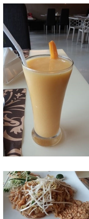 <아얄라 몰 내에서 유명한 태국음식점에서 먹었던 망고쉐이크와 팟타이. 맛있었습니다!>