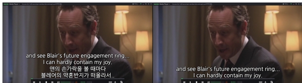 처음에는 통합자막으로!! 영어+한국어로 영어문장과 뜻을 결합하는 쪽으로 이해하면서 again&agian 하였다.