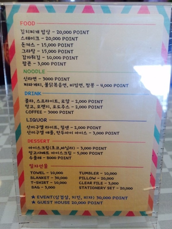 이용할 수 있는 음식 메뉴의 경우에는 김치찌개정식과 라면 두 종류뿐이지만, 마닐라라운지 역시 매주 음식 이벤트를 하기 때문에,