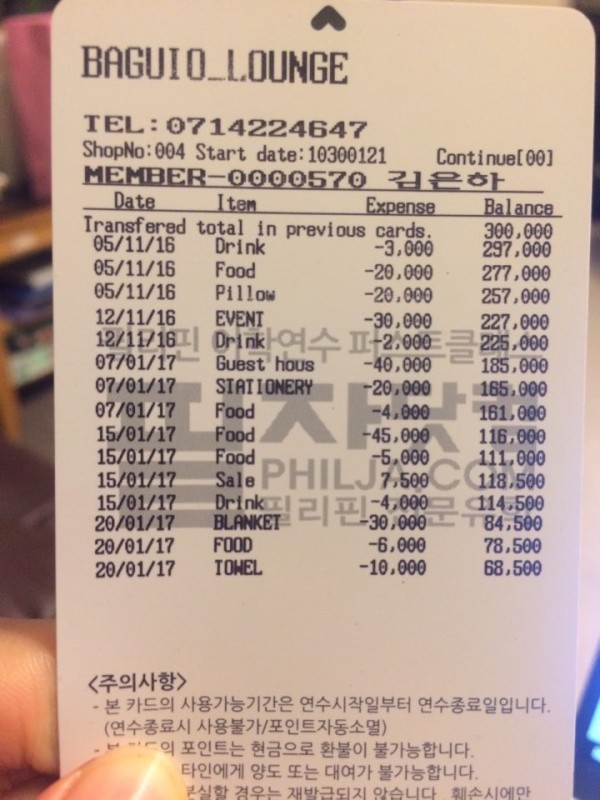 필자카드에 찍힌 30만원은 개인적으로 3개월동안 연수를 해본 나로써는 넘치는 금액이다.