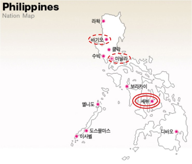 고려를하게 된 도시는 3군데로 바기오/마닐라/세부의 순서였고, 처음에는 바기오나 마닐라를 선택하려고 했었습니다.