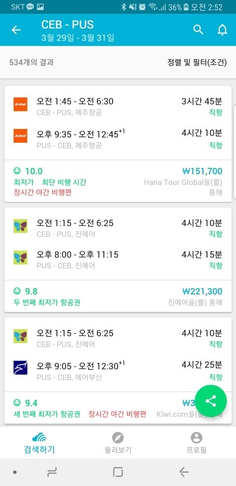 그리고 일반적으로 예매할 때는 각 저가항공사의 앱을 이용하는게 가장저렴합니다. 그리고 저가항공사 운항시간의