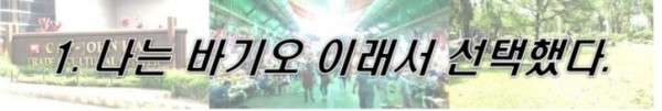 처음에는 세부와 바기오를 고민하다가 세부는 관광도시라서 많은 사람들이 몰린다고 들어서 동생의 추천을 따라 바기오를 선택했죠.