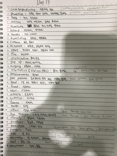스피킹 하면 틀린 부분을 빨간 글로 작성해줘서 저는 이걸 저의 새 노트에 옮겨서 다시 반복 공부 했습니다 !