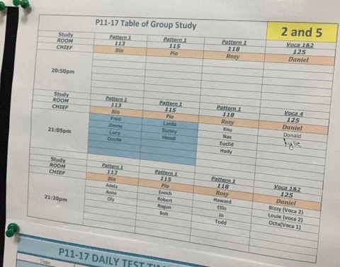 <보드판에 붙어있는 현황표 >