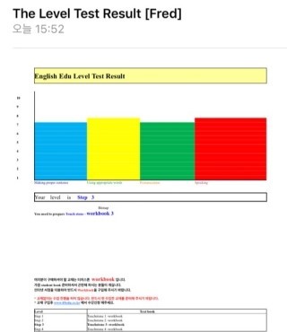 아 방금 헤텍4개월 전화영어 레벨테스트 결과 도착했는데 ㅋㅋ 레벨3이네요 처음에 1로 시작했는데 ㅎㅎ (시험문제에 당황해서,,ㅋㅋ)