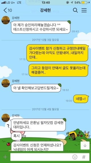 저는무슨 일 있을때마다 강세현 대리님한테 카톡 하는데 그때마다 바로바로 해결해 주시고 도움 주시더라고여 오히려