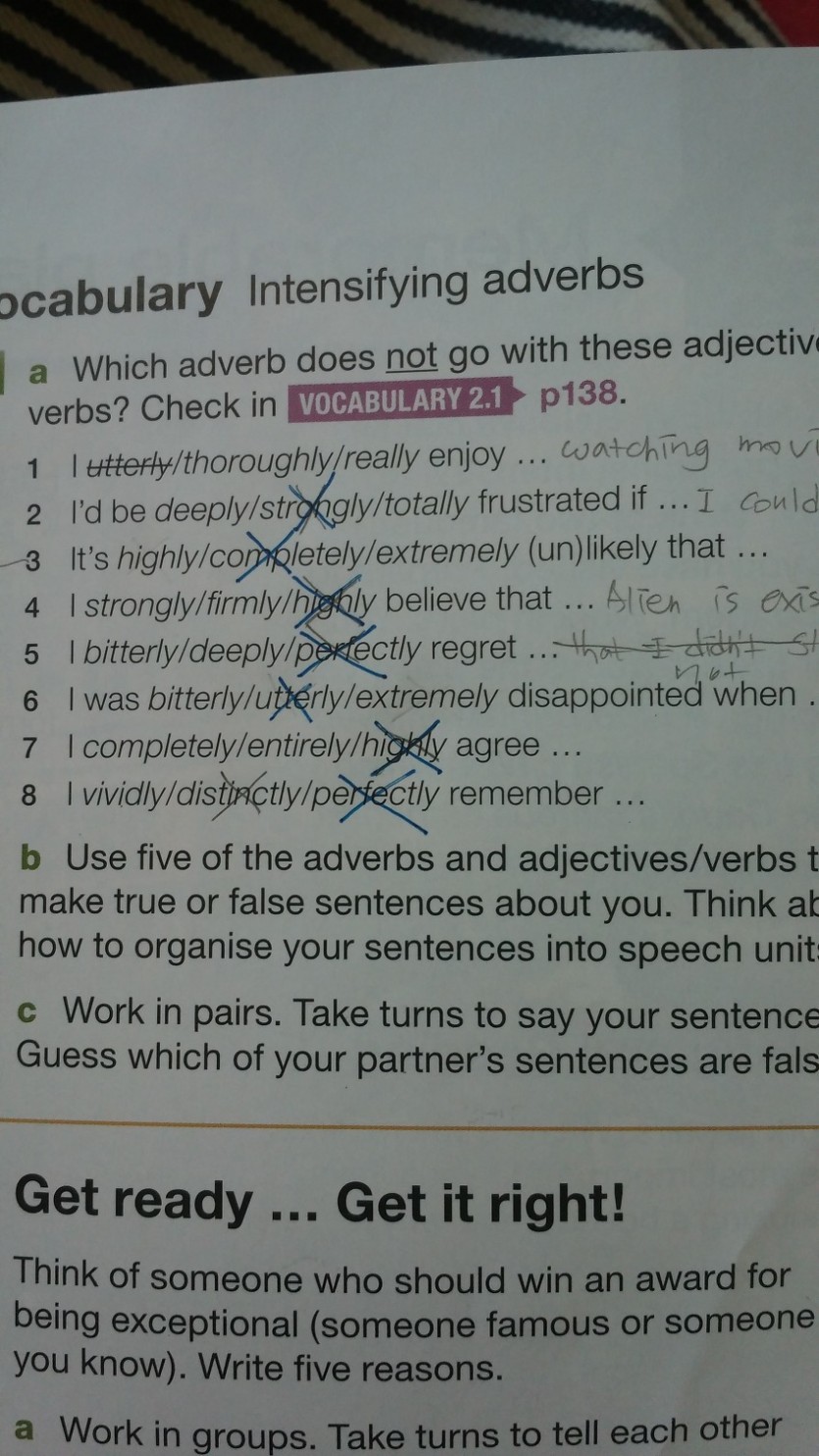 예를들어 enjoy 앞에는 thoroughly, really 는 쓰이지만 utterly 는 쓰이지 않는다고 해요.