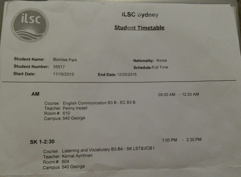 오늘은 자신의 레벨에 따른 책과 함께 학생증과 시간표를 받았습니다. 그런데 책이 헌책이더라구요ㅠ.