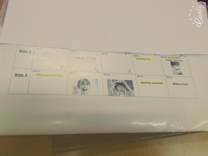 전 첫주부터 다닌게 아니라 받지 못해서 같은반 일본친구껄 찍어놨어요.