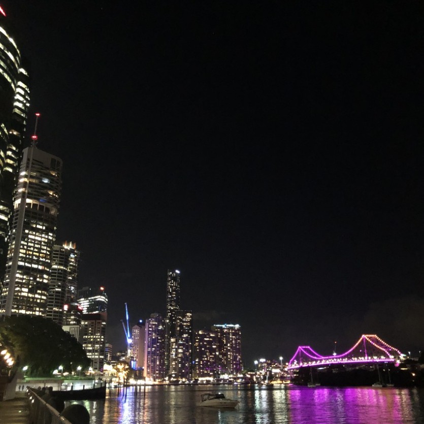 페리를 타며 보는 브리즈번강의 야경이 아주 예쁜데 매일 무료 페리를 타고 다니며 볼 수 있다는 게 좋다.