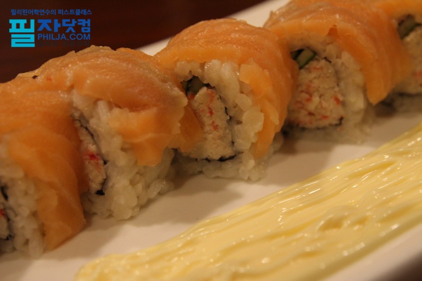 ▲ 크랩으로 꽉 채워진 연어 롤이예요!