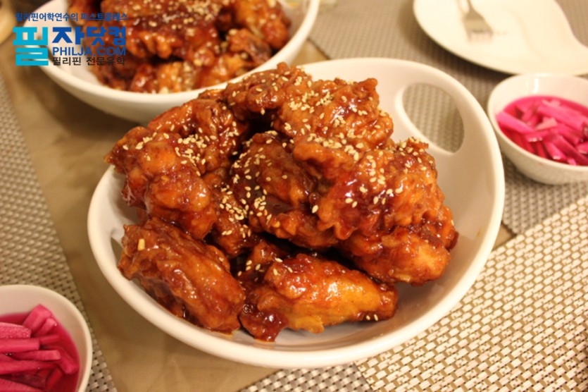 먹음직스러운 양념에 버무러져있는 마닐라 필자라운지 의 치느님이에요!