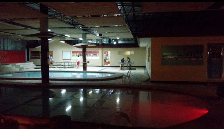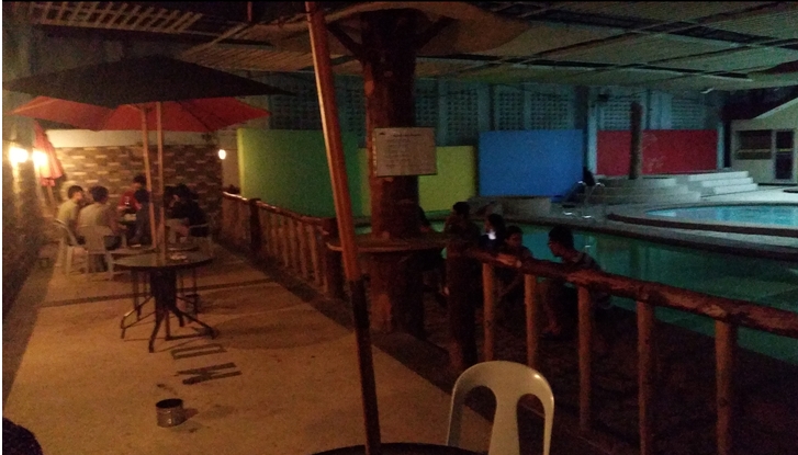그리고 수영장 옆 테라스에서 얘기하는 사람들도 있고... 가끔씩 수영하는 사람들도 있습니다.