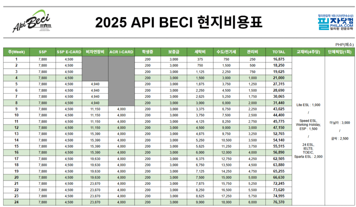 바기오 / BECI 어학원 (Sparta 스파르타 캠퍼스)